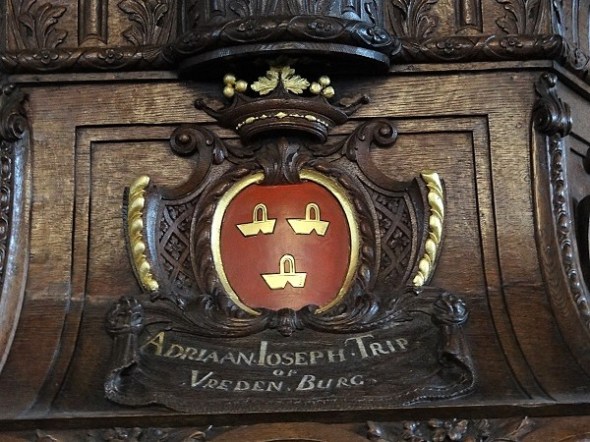 Op de dakruiter staat een windvaan met het wapen van de stad Groningen: