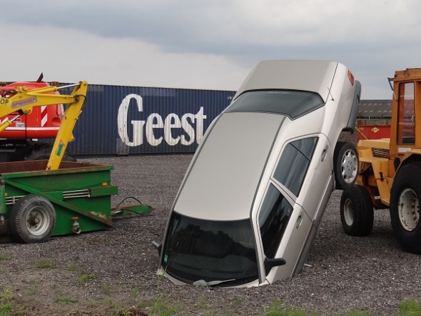 Een voorbeeldig geparkeerde auto bij Wittewierum: