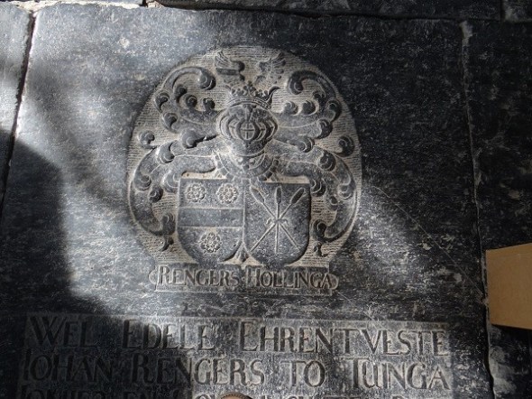 De Rengersen liggen hier in het koor begraven en het is een wat vreemde sensatie over hun grafstenen te lopen, terwijl je naar hun portretten en -spullen kijkt. In tegenstelling tot de rouwborden speelden die grafstenen verder geen rol in de expositie (dacht ik):