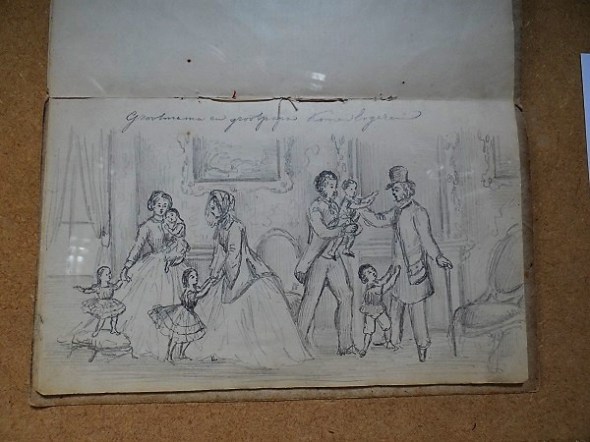 Potloodschets van een familiebezoek: