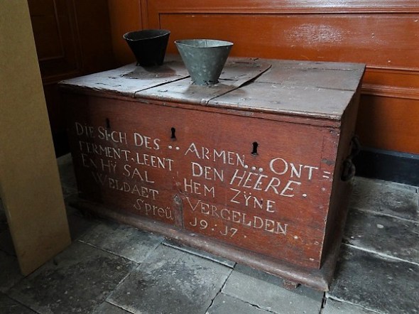 Met alle aandacht voor de rijkdom op diverse exposities in de provincie, wil de armoe nog wel eens uit zicht verdwijnen. Zo was de diaconiekist van Wittewierum naar een wat minder prominent plekje gedirigeerd: