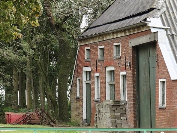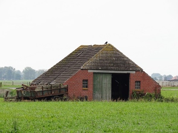Met de langzaam inzakkende, asbestbedekte schuren: