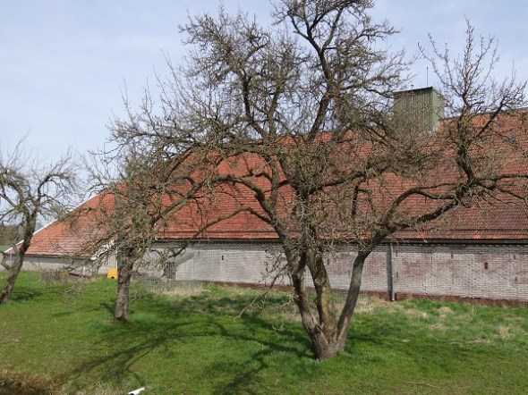 Met de boomgaard opzij van het huisje zelf: