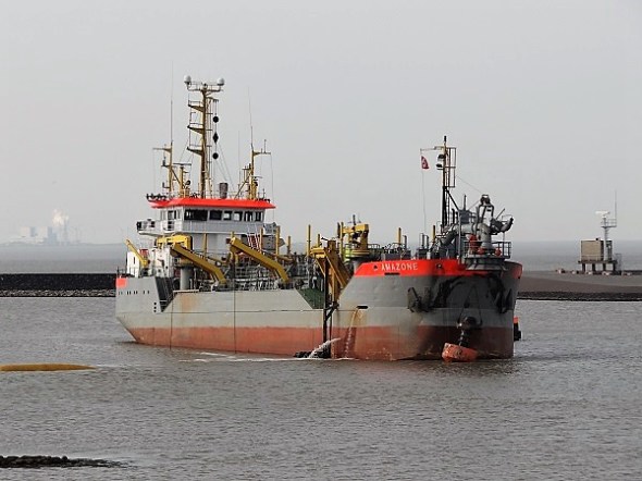 De sleephopperzuiger Amazone diept het Zeehavenkanaal uit: