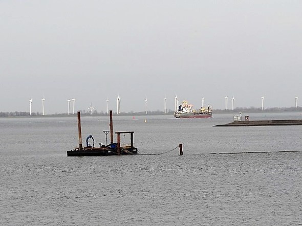 Op de dijk bij Delfzijl: