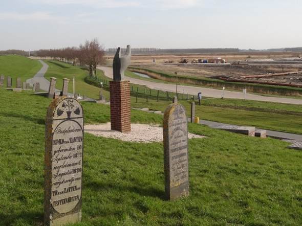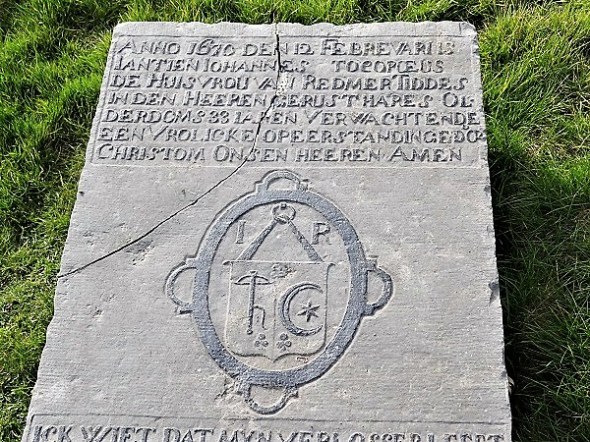 Op de dijk nog steeds de Oterdumer grafstenen, waarvan deze de oudste zal zijn:
