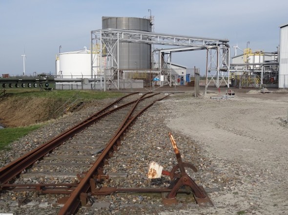 De steenfabriek in Delfzijl net over de grens bij Appingedam staat nog steeds te koop, de schoorsteen is opgeknapt: