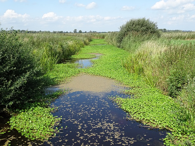 Vraag me af of de waternavel in de Onlanden nog wordt bestreden – er lag in elk geval tamelijk veel in sommige watergangen bij het Leekstermeer: