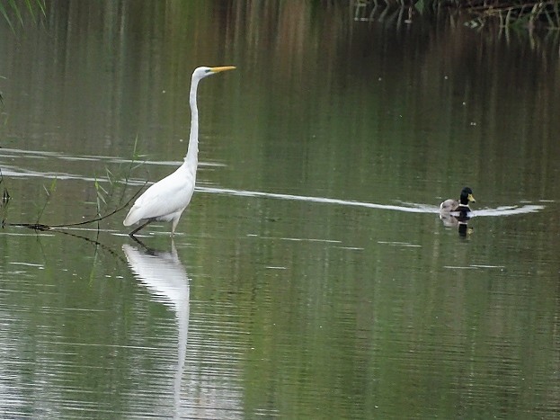 Geplaatst op: 27 september 2021 Hoort bij: Drenthe, Onlanden 6 reactiesOnlanden, vanaf de brug bij het watervalletje – langzaam schreed de zilverreiger naar de eend, die echter ruim op tijd weer weg was:
