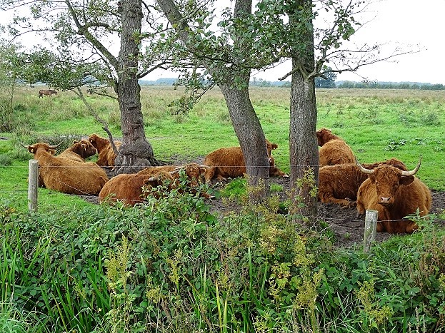 Hooglanders in hun ‘zitkuil’ aan de Drentsedijk: