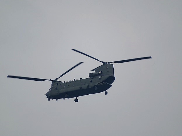 Ik zag en hoorde bij Bunnen in totaal zeven helicopters, waaronder een paar van deze jongens, die wat betreft hun vorm doen denken aan de oorlog in Viêtnam: