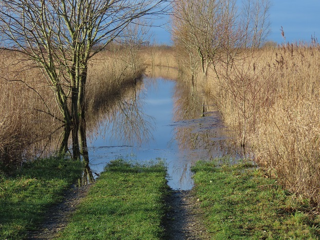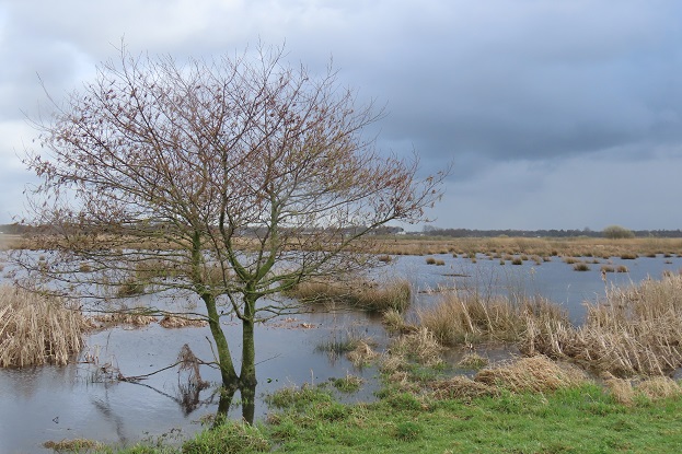 Die bomen, deels van de laatste jaren, staan langs een voormalig dijkje, dat zo toch weer zichtbaar is: