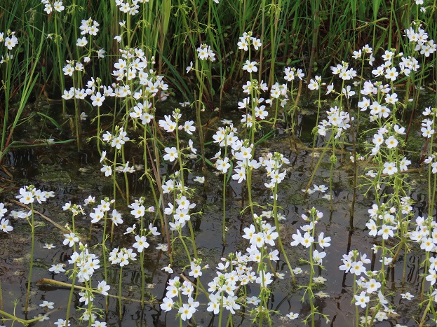 Het zijn waterviolieren, eerder hier in de omgeving alleen eens gezien op of bij de Peizer Schipsloot. Nu dus massaal in een sloot bij de Zanddijk (Peizerwold). En verder niet. Of zou iemand soms zaad uit een tuinwinkel hebben uitgestrooid?