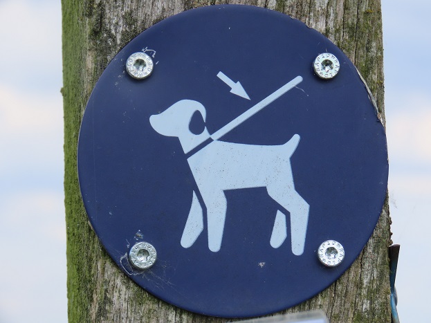 Maar nu zijn er dus bordjes die de hondenbezitters wijzen op de wenselijkheid van het aanlijnen. Uiteraard heeft iedere in de Onlanden participerende natuurbeheerorganisatie zijn eigen bordje, waarbij alleen de kleur rood is gemeden als de pest, waarschijnlijk ook omdat de term ‘verbieden’ allang uit het woordenboek is geschrapt..
