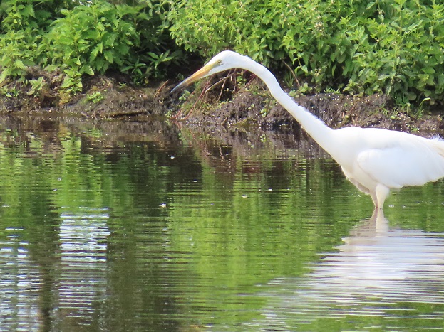 Hier raak je niet gauw op uitgekeken. Jonge, solitaire zilverreiger kurend in weiland bij de Onlandse dijkweg onder Roderwolde: