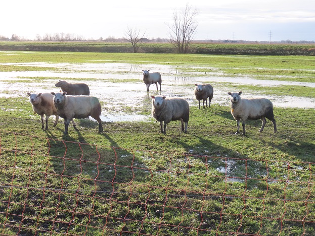 Bij de Hamersweg/Langmadijk. Vroeger stonden schapen op de heide ook wel op ondergelopen of drassige stukken., maar ik weet niet of zo’n weiland nou zo gezond voor ze is: