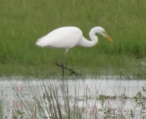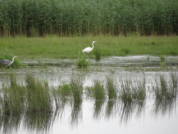 Dat lijkt wel een lepelaar. En hij heeft wat gevangen ook: