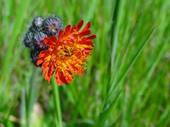 Roderwolde – ontluikend havikskruid in slootrand Hooiweg: