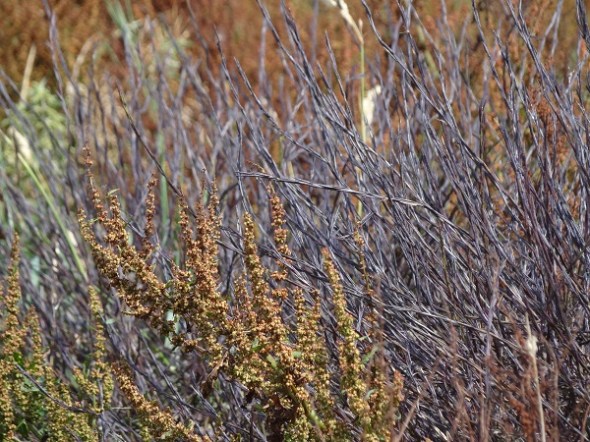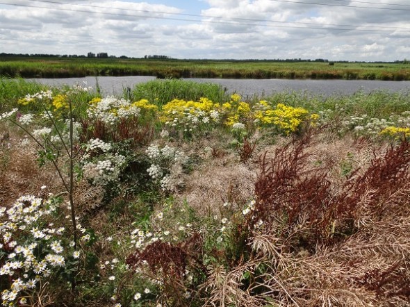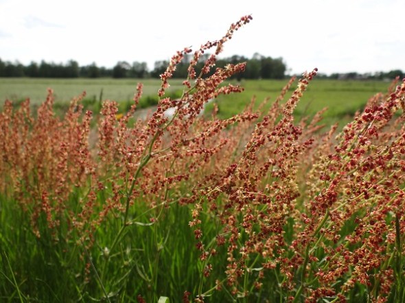 Dit is het onbegaanbare stukje voorbij de Onlanderdijk, roestrood van de uitgebloeide zuring: