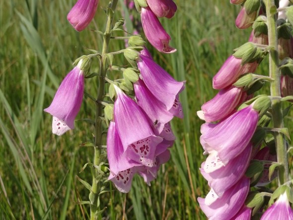 Opeens op verschillende plekken vingerhoedkruid, zowel de lila variant –