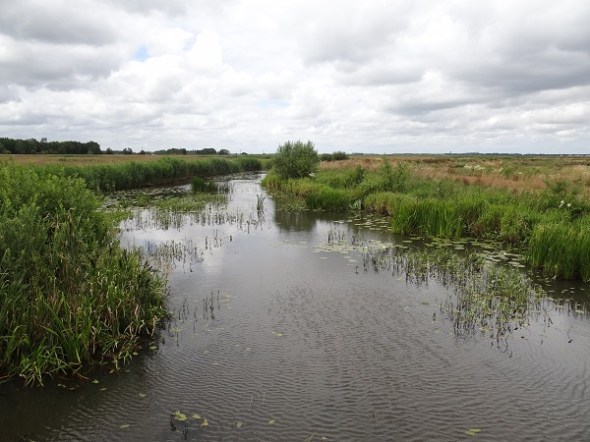 Hele stukken zijn bezet door kattestaarten, mede door de lage waterstand: