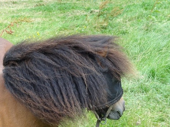 Bij Winde, pony met vlechtjes en in zebrapak: