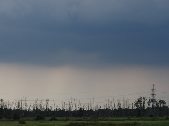 “Donkere wolken pakken zich samen”, heet dat dan. Het leek erg dreigend, maar er viel slechts anderhalve drup en een spetje uit: