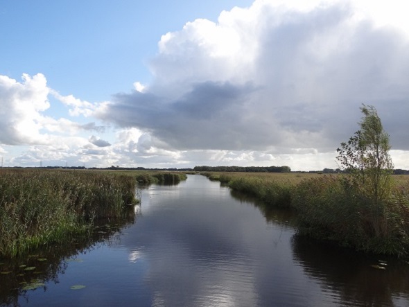 Geplaatst op: 21 juli 2019 Hoort bij: Onlanden 3 reactiesMet die windkracht 4 tegen en mijn voortdurend overslaande trappers was ik het fietsen weldra beu. Ik zat al vlakbij Roderwolde en besloot de dijk tussen de Roderwolder- en de Onlanderdijk af te lopen. Daar mag je niet fietsen, maar ik heb er al vaak mensen zien wandelen. Bovendien voert die dijk langs Het Waal, een intrigerend moerasbos bij Roderwolde.
