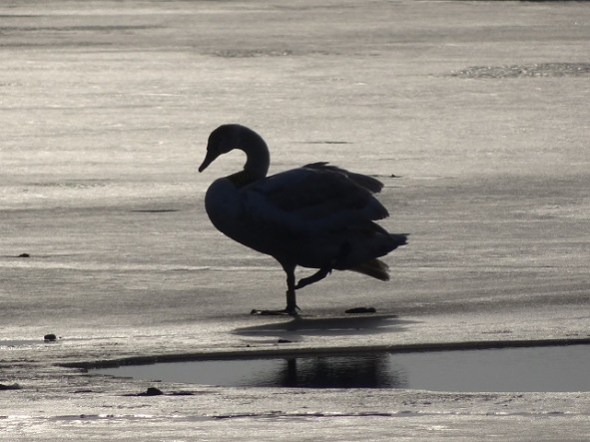 Zwaan op het ijs bij de Hooiweg:
