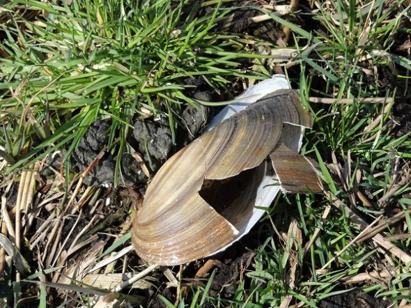 Aangevreten zwanenmossel op slootwal Matsloot: