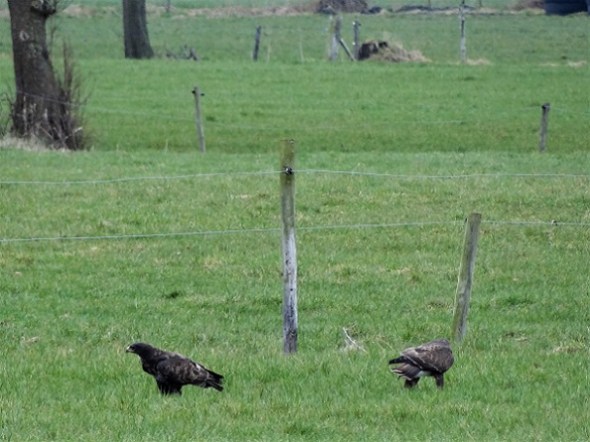 Paartje buizerds in weiland bij de Groeve, tussen Sandebuur en Foxwolde: