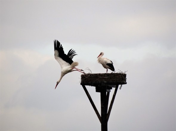 Op het ooievaarsnest aldaar werd driftig geklepperd. Jammer genoeg hielden ze ermee op toen ik naderde: