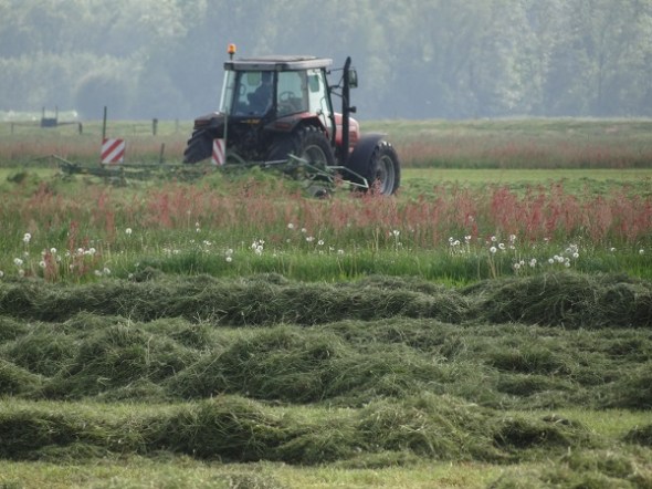 Een heel eind verderop, onder Oostwold, was een boer aan het maaien. Het zuringseizoen is klaarblijkelijk geopend: