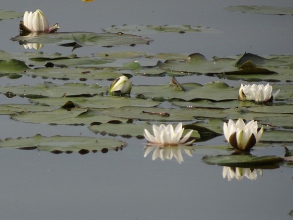 In het diep ontloken de eerste waterlelies: