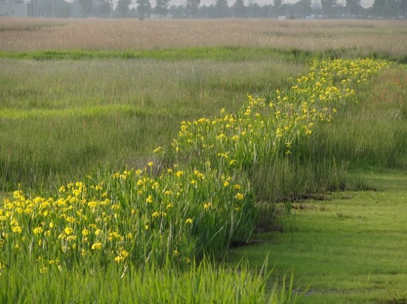 De volledig met gele lissen opgepropte sloot die ik al vaker kiekte: