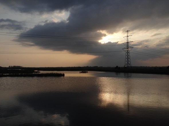 Bij de Onlandsedijk, even voor zonsondergang: