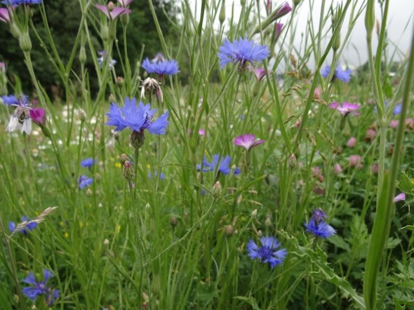 Korenbloemen en bolderik op nieuwe grond bij de Eemsgolaan:
