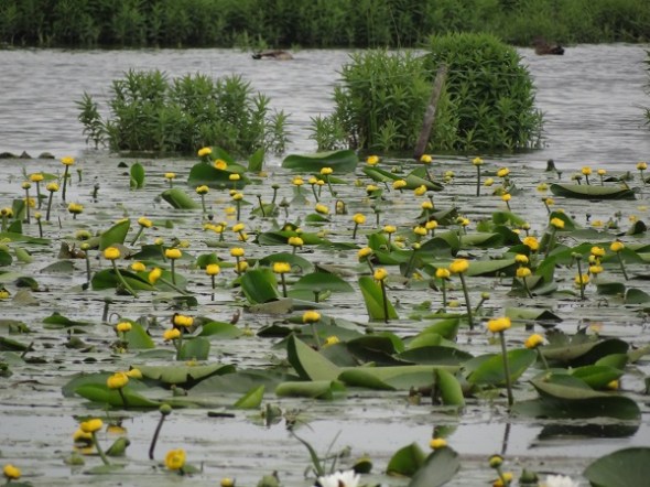 Bij de meeuwenkolonie – een menigte gele plompen:
