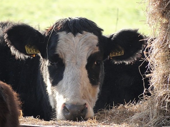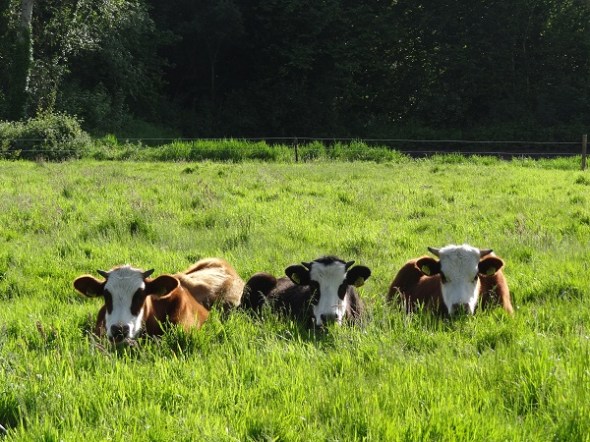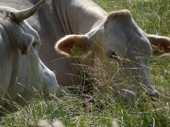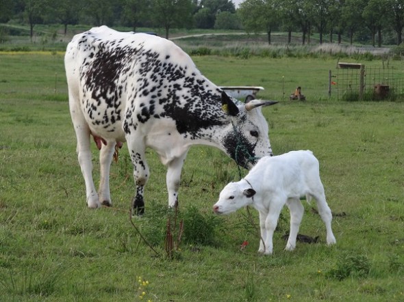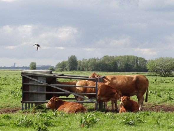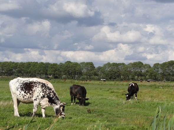 Achter Foxwolde stond in een weiland een stel pinken met allemaal stippen en vegen van klei op hun koppen. Vroeg me af waarom die stippen niet elders op hun lijven zaten, maar bedacht dat ze daar wel zullen zijn weggelikt. Rest nog de vraag hoe ze aan die stippen en vegen kwamen: