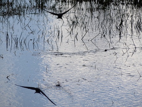 Zwaluw met narcistische trekjes? Nee hoor, zwaluwen plukken ook insecten zoals schrijvertjes van het wateroppervlak af: