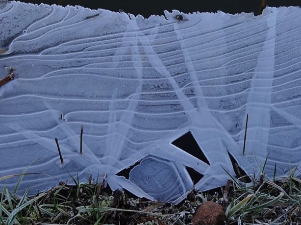 Ze hadden zitten afstromen, zodat er op de sloten aan de randen veel bomijs lag: