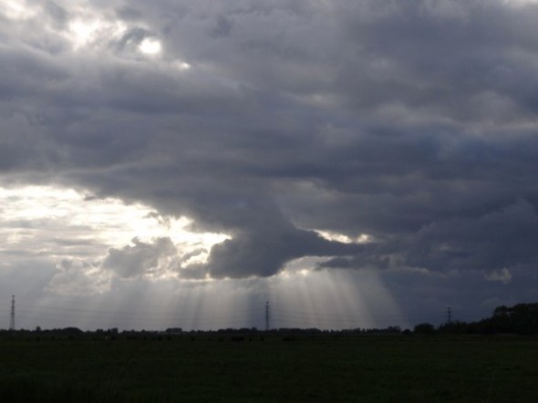 Jacobsladders in het westen. boven het Leekstermeer: