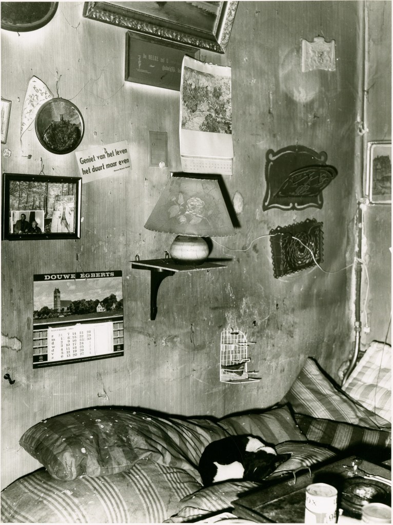 Intussen maakte de GGD een serie foto’s van de tamelijk afgrijselijke woonsituatie bij haar in huis. Ze leek meubilair bij het grof vuil weg te halen en op te potten. Haar hondje sliep doodgemoedereerd op een goor bed. Aan de muur boven dat bed hingen foto’s van wijlen haar man Minne – ooit machinist, maar later fabrieksarbeider en los werkman – en haar zoon naast kalenderplaten, een leeg brievenbakje en een uitgeknipte krantenkop: “Geniet van het leven, het duurt maar even”.