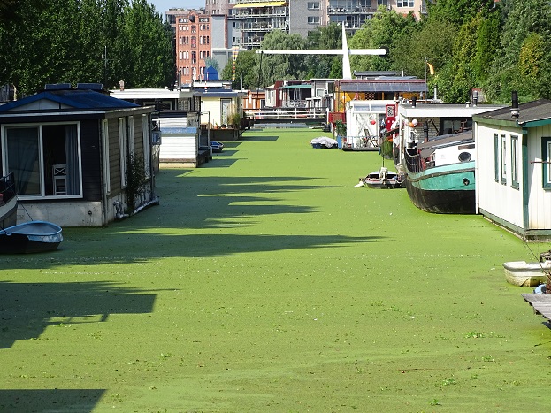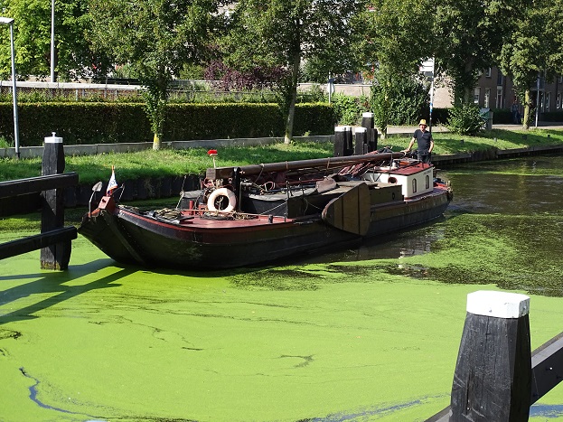 Ook het Oude Winschoterdiep ligt vol kroos: