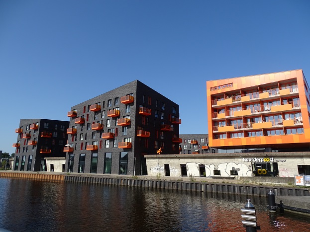 Die zwarte gebouwen met oranje balkons links van de oranje Hete Kolen op het Europapark zijn nieuw voor me. De kolenmuur van de verdwenen elektriciteitscentrale is erin verwerkt met graffiti en al:
