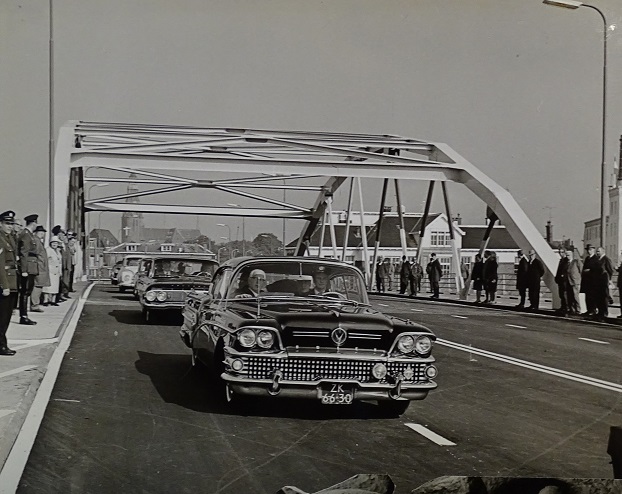 Geplaatst op: 30 november 2022 Hoort bij: Stad toen 2 reactiesDe officiële opening van het Groninger Emmaviaduct vormde een hoogtijdag voor wederopbouw en automobiliteit. Die vrijdagmorgen de 25ste september 1964 reden om 11:20 uur de eerste auto’s over het nieuwe viaduct in de richting van het Stadsparkpaviljoen, waar de genodigden zouden toasten op de nieuwe voorziening, tegelijk een stadsdoorbraak en een belangrijke schakel naar de grote uitvalsweg naar het zuiden (nu A 28). Voorop ging de dienstauto van burgemeester Jan Tuin.