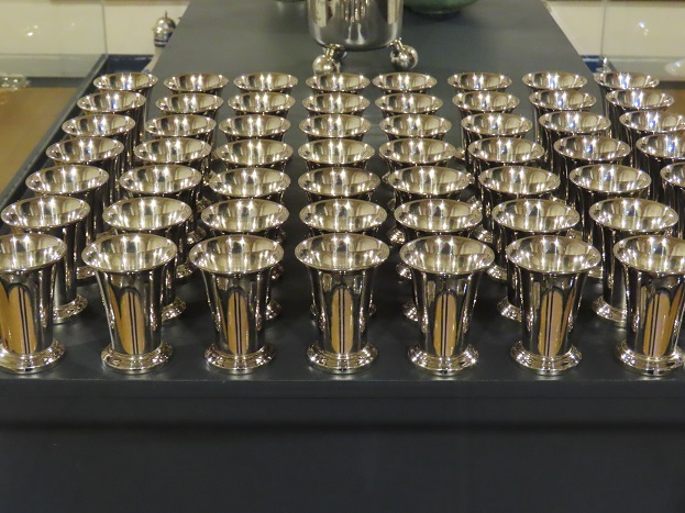 Regiment avondmaalsbekertjes. Oorspronkelijk waren er collectieve bekers, maar vanwege de hygiëne werden die eind negentiende, begin twintigste eeuw op veel plaatsen vervangen door kleintjes: