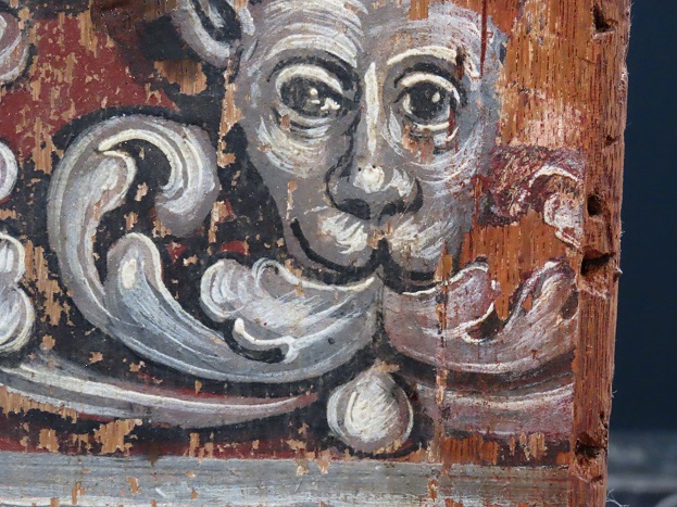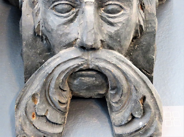 Ongedateerde gesneden manskop, afkomstig uit een koorafscheidingshek in de kerk van Loppersum: