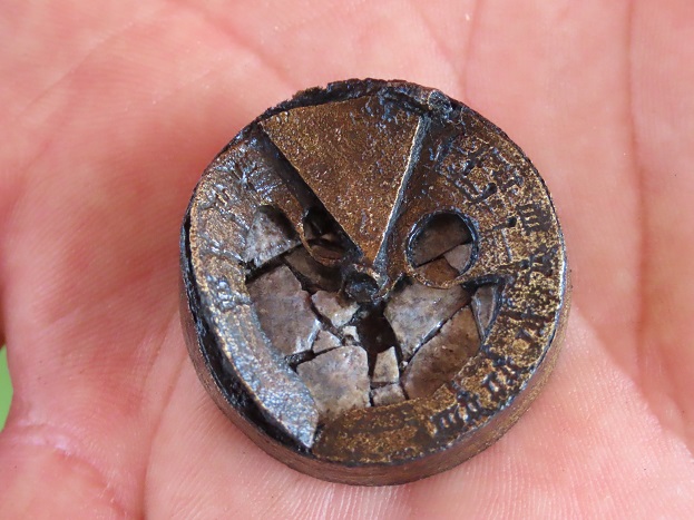 Speld of distinctief met een griffioen – mogelijk van een middeleeuwse bode uit de Stellingwerven (die een griffioen in hun wapen voerden)? Zo ja dan iets voor wethouder Bloemhoff: