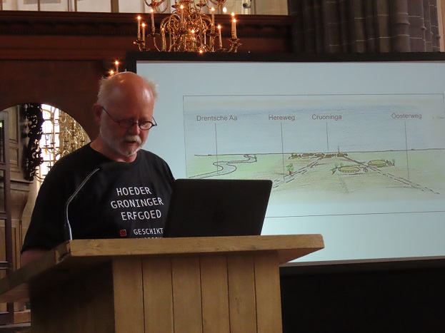 In de Martinikerk waren er lezingen door de archeologen Jasper Huis in ’t Veld, Gert Kortekaas en Bert Tuin. Van het eerste, vooral algemene verhaal heb ik door de kerkgalm helaas weinig meegekregen, vandaar dat ik bij de volgende maar vooraan ben gaan zitten. Kortekaas vertelde o.a. over de twee prehistorische dorpjes (ten noorden van Grote Markt en ten zuiden van de latere stadswal) die na 1040, met de merendeels planmatige aanleg door de Utrechtse bisschop, zijn opgegaan in de prille stad Groningen: